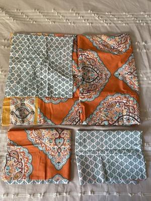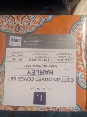 [This review was collected as part of a promotion.] Lush Décor's 3pc Harley Cotton Duvet Cover Set Tangerine gives a nice exotic pattern to any bedroom. I love the bright color and flowery design. The reversible part of it makes it nice for a change in design. The set fits perfectly and the color are vibrant. {This review was collected as part of a promotion.]