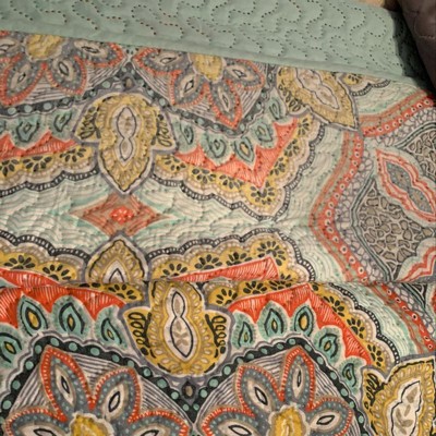 3pc King Yara Reversible Medallion Quilt Set Blue/Red/Mustard Yellow - VCNY: Hypoallergenic Bohemian Bedding, Microfiber