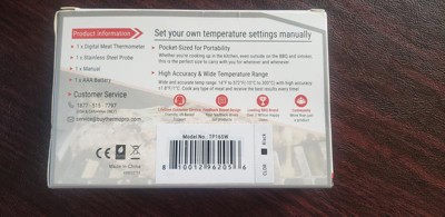 The ThermoPro TP16SW Digital Thermometer works perfectly. The digital display is easy to see and read. It is easy to use and set custom temperatures. It also has preset temperatures. Insert the probe into the food, set temperature and timer. I like that I do not have to keep opening the oven or grill, the timer will beep when the meat is finished cooking. The probe wire has a good length. The backlit display is a bonus. The thermometer is compact and has multiple mounting options, which is nice. It also fits in a drawer when not in use. The ThermoPro is much easier to use than the old fashion thermometer. I was impressed with how accurate and consistent the thermometer is.