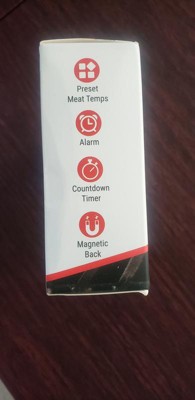 This thermometer is great! I love that it's small, compact, digital, and very easy to use. You can preset temperatures, set alarms and countdowns and it also has a very handy magnetic backing!!!!!!!!