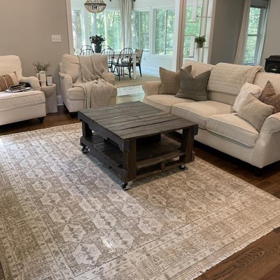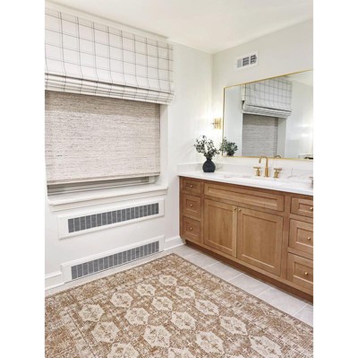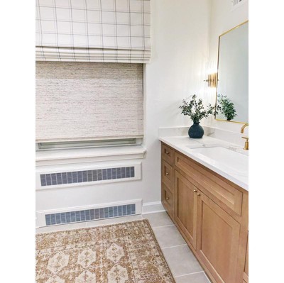 After looking at other reviews I bought this because people said it was more of a tan/neutral and less gold. This was correct and it works perfectly with my mid tone wood cabinets. It’s a little pricey for a Target rug but it has the feel of McGee and Co so worth it!