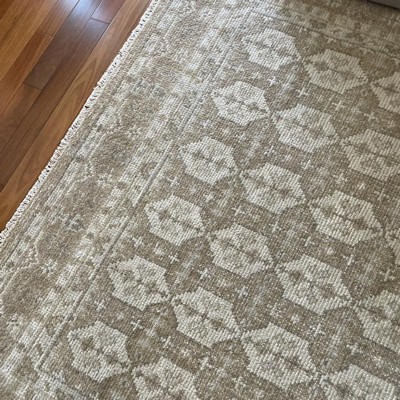 Lend underfoot comfort and sleek style to any room in your home with this Hand Knotted Persian Style Tile Rug from Threshold™ designed with Studio McGee. This knotted rectangular rug features Persian intricate designs in a distressed finish that will provide a visual focal point for any room, while blending seamlessly with your existing decor. Plus, the low pile height makes it ideal for placement in high-traffic areas like your den or entryway. Whether you're looking for a focal point for your living room or a soft spot to land inside your patio door, this knotted tile rug makes a great pick for any space in your house.