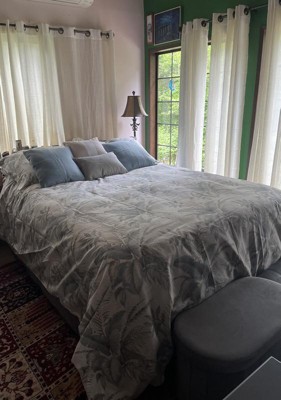 Very attractive, but wish it was a little bit more blue. Fits our split king bed well. Under side seems a bit thin, but should be OK. Comfortable