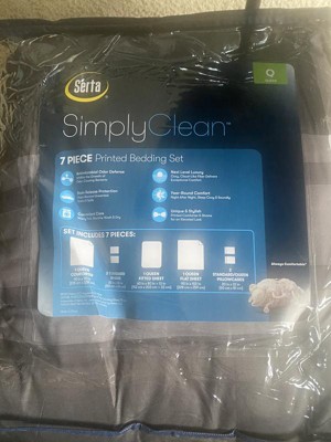 Safe. Comfortable. Stylish. Clean. Easy. A one-stop-shop for all your bedroom needs! The Serta Simply Clean 7-Piece Bed in a Bag Set is perfect for any bedroom! The comforter set features a large pleasant jax plaid. It merchandises perfectly with the lined sheet set to add an element of style, don't worry about buying multiple non-coordinating pieces ever again! Soft and cozy, this durable Bed-in-a-bag set is packed full of special features including both anti-microbial and stain resistant treatments, helping to keep your bed fresh and smelling clean all year round. The soft, durable, polyester fiber makes it easy to care for and helps you get a great worry-free night's sleep every night!