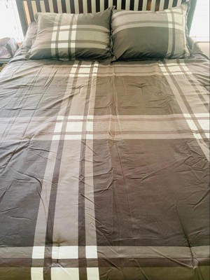 [This review was collected as part of a promotion.] Super nice Serta bedding set. Quality wise this does feel luxe. This set comes with a sheet set, comforter, and the two shams. The sheets have a striped pattern and it's super soft. The comforter is lightweight which I like, it's cooling for these warm, summer nights we have been having here lately. The plaid pattern is nice, and comes across more masculine to me for a man's room. The colors of the comforter are white and varying shades of gray. I have this set on my bed but I added some pink and white accents like flowers and that helped for it to not look too masculine. Nonetheless, the quality is A+ on this set.
