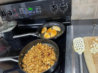 When I first moved, I had my old pots and pans with me and they were already peeling at the bottom. I saw this Calphalon set and bought it to replace my old set. I never realized what I was missing out on until I tried these! I use it for frying to grilling and more. We cook a lot here to save money instead of takeout so these pans get used and abused often, but have held up well!