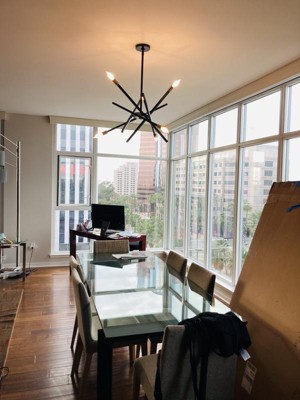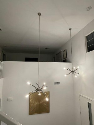 We love this new light! It sits over our dining table and truly love that you can adapt this to your space. Only catch is that the extender doesn't want to sit completely straight with the 12" and 6" extension.