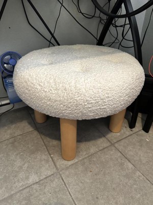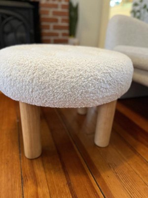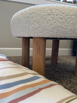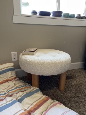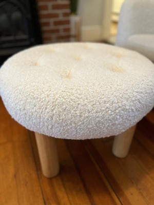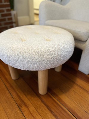 Kessler Round Tufted Faux Shearling Upholstered Ottoman with Wood Legs Cream - Threshold™ designed with Studio McGee Assembly Required