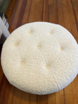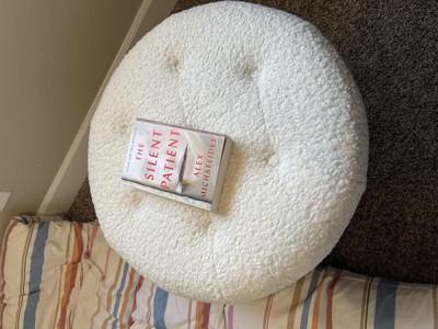I love this! It's such a cute sherpa material, but it isn't too puffy so it doesn't get overly hot to sit on. It's a good height and radius to use as either a footrest or a seat, so it's very versatile. It's very sturdy and easily supports the weight of a person. I didn't have to do anything to assemble it, and it wasn't heavy to carry either. Great addition to my apartment!