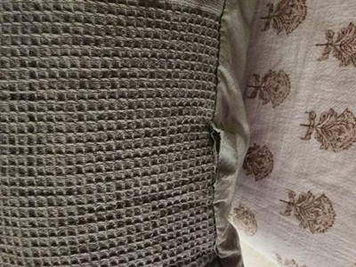I ordered 2 of these in the green and when they arrived they were 2 different shades of green and didn’t match up with the same pattern of lines. They seem like good quality. The imperfections aren’t as noticeable when you add more pillows in front but still a sham they aren’t as they should be!