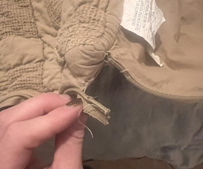 We purchased 2 of the camel shams online. They are almost a muted army green color in-person which is not what we expected. Additionally, the pillow case sizes are slightly different and the stitching does not match so they look wonky. Returning.