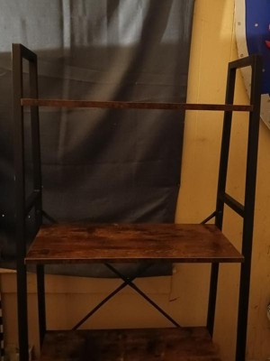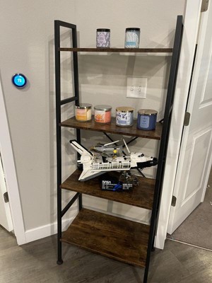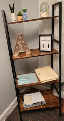 [This review was collected as part of a promotion.] I love the how this bookshelf looks in my home office. It has a clean, modern shape, and the look of the combination of the black, wrought iron-looking steel frame & warm stained shelves is very stylish. It was really easy to assemble and it’s quite sturdy. It came with hardware to permanently secure it to the wall, and I appreciate that safety was taken into consideration when it was packaged. Overall, it’s pretty great and would look good in any room!