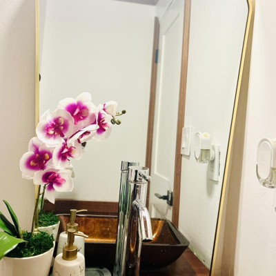 Ordered two mirrors for master bathroom renovation and one arrived shattered and broken. Target please do a better job at quality control for these more fragile items. I had to repackage, load, and return in store for a refund. Aside from the annoying extra manual labor, the return process as a whole was easier than I expected. But now that the mirrors are out of stock I couldn’t try to re order anyway! The mirror was more of a champagne rose gold hue than gold/brass that I was going for.
