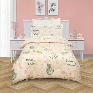 5pc Twin Sleepy Cats Kids' Bed in a Bag Charcoal Gray - Kidz Mix: Girls Microfiber Bedding Set, Animal Print, Lightweight