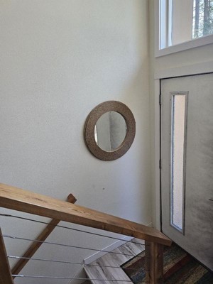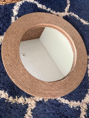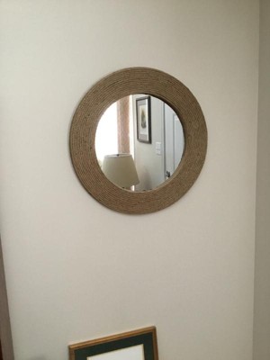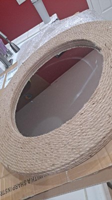 [This review was collected as part of a promotion.] This jute rope round mirror is very cute! It seems durable and is a great addition to our coastal decor. My one critique is that the rope doesn’t cover the inner edge of the frame around the mirror.