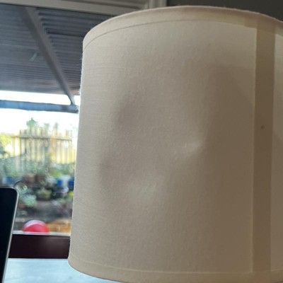 Cute little lamp. Wood part is much lighter than pictured and just printed on (bought the cream variation). Shade arrived dented but not the end of the world, I’ll have that side face the wall. Arrived with some scratches. Overall cute for the price