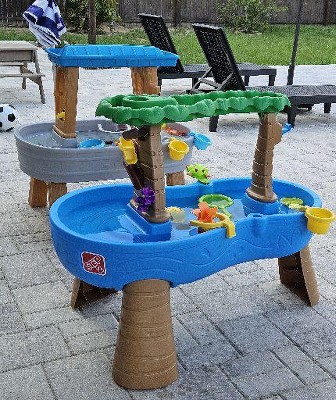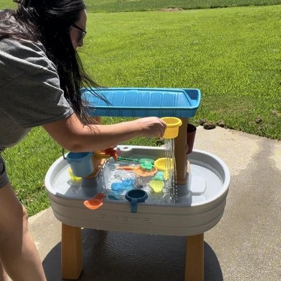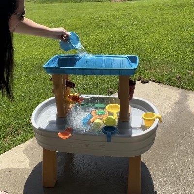 Love everything about this water table. We've tried a few different ones, and this one is a winner. Our toddler plays with it almost every day. It's super sturdy, and it has a perfect amount of fun features. It looks modern as well on my patio.