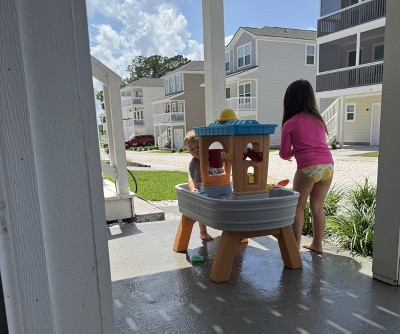 The kiddos absolutely LOVE this water table. I love that some of the attachments screw in so they can’t get lost. And it’s more than just dumping water. Love the water wheel and dumping bucket! Be ready for hours of fun.