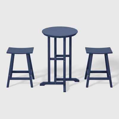 Merrick Lane Five Piece Faux Teak Patio Dining Set - 35" Square Table, Two Armless Stacking Club Chairs, 9' Teal Umbrella and Base