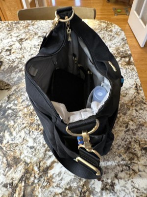 [This review was collected as part of a promotion.] I bought the black with gold hardware bag for a trip next month. I haven’t used it yet but I believe it will hold everything I need on my flight including a change of clothes in case my luggage should be delayed. This is my second Baggalini and probably wound be my last as I am eyeing the Momento Bag. I do wish it had the built in wallet, a feature that I appreciate!