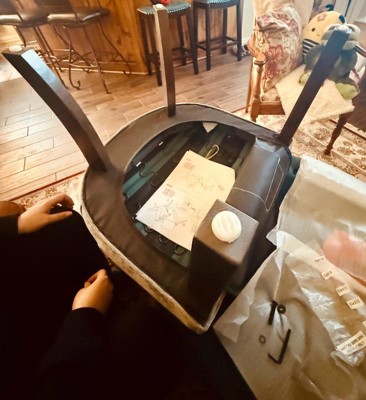 [This review was collected as part of a promotion.] Don’t mind the plastic, I am keeping it on there until the room is finished being remodeled. The assembly was pretty easy, there is a manual and everything you need is in the pouch under the chair. Very sturdy and comfortable, very pretty, a little low for my taste. Great value, I am happy to have tested this.