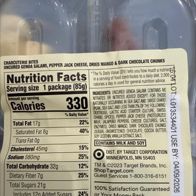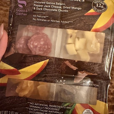 Genoa Salami, Pepper Jack Cheese, Dried Mango, Dark Chocolate Chunks - 3oz - Good & Gather™ - 2 of 3Genoa Salami, Pepper Jack Cheese, Dried Mango, Dark Chocolate Chunks - 3oz - Good & Gather™ - 3 of 3