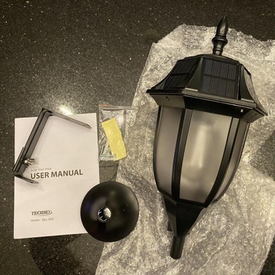 Solar Wall/Pillar Outdoor Lantern with Integrated LED Bulb Black - Techko Maid: IP65 Weatherproof, Dual Lighting Modes
