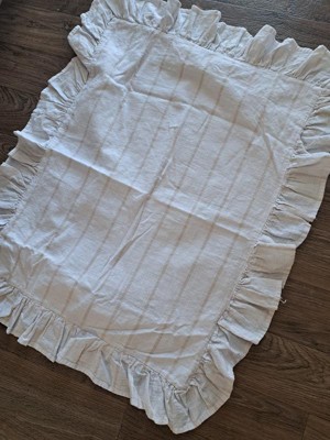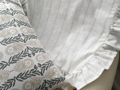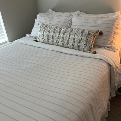 Yarn Dye Stripe with Ruffle Duvet Cover & Sham Set White/Khaki - Threshold™ with Studio McGee
