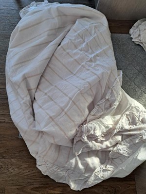 Dress up your bedscape with this Yarn Dye Stripe with Ruffle Duvet Cover & Sham Set from Threshold™ with Studio McGee. This striped bedding set includes two standard shams and a matching duvet cover that's detailed with ruffle accents on the hem for coordinated style. Made from cotton material, this duvet cover bedding set brings you year-round comfort. Plus, it comes with a end closure on the pillowcase and buttons on duvet cover that allow you to keep the inserts easily and neatly tucked in.