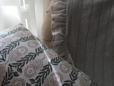 This is a beautiful duvet and sham set that I purchased to go with the oversized Studio McGee pillow in the picture. It is a perfect not quite white and creamy beige stripe of a linen-like textured material. Ironed like a dream. I’m waiting to find sham stuffers that will fill the generously sized shams. I was so happy to see it go on sale and had to snap it up! It will be a wonderful spring summer set.