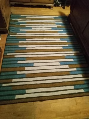 I got my first area rug just a couple of years ago, and I'm happy to have this as my second! Perfect size to actually end up under my bed when I get it fully unraveled. Love the colors and simple pattern. Very modern in spite of how easy it is. I wish it were a little thicker, but it's actually better quality than the rug I already had. Give this one a shot!
