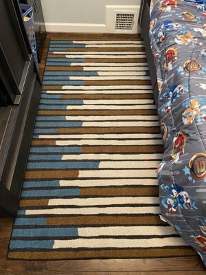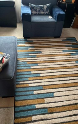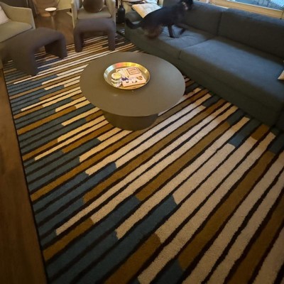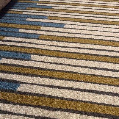 This Striped Area Rug from Threshold™ is a stylish option for tying together the decor of any room. Made from soft tufted fabric, this area rug features a multicolored stripes print for an eye-catching look. The fade- and stain-resistant construction helps keep the rug looking its best for longer, and the latex backing helps prevent skidding.