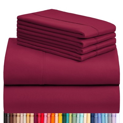 Solid 6 Piece Sheet Set - Ultra Soft, Deep Pocket - Becky Cameron (Extra Pillow Cases!), Burgundy, California King