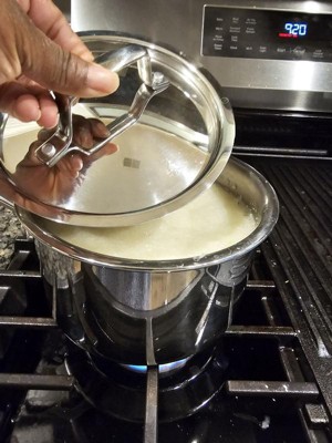 [This review was collected as part of a promotion.] @berghoffusa has designed a beautiful stainless steel 2qt sauce pan that's perfect for so many dishes, from cooking grits, vegetables, sauces, boiling eggs and more. The best part about it is that, the heat is evenly distributed and the lid locks in moisture, the results are delicious creamy grits.