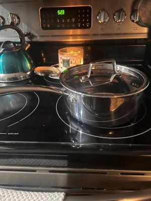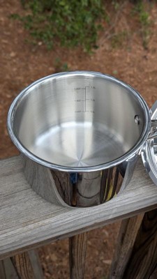 [This review was collected as part of a promotion.] The saucepan is two quarts, just the right size to make a couple of boxes of macaroni and cheese or a vegetable side for a family meal. The stainless steel is a lot safer to cook with than a nonstick pan; you don't have to worry about a coating flaking off. It's convenient to use on both electric and induction stovetops and holds heat well. What makes this pan unique is the measurement lines on the inside. I'm able to fill it with water to the right line instead of using a measuring cup, and so far, the lines and numbers are not wearing off. However, I do hand wash all of my cookware, even though it does say dishwasher safe. With proper care, I expect this saucepan to last a long time.