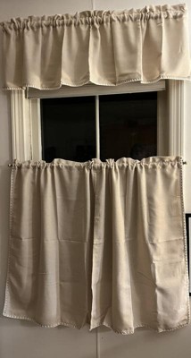 Kate Aurora Coastal Hamptons Living Complete 3 Piece Textured Kitchen Curtain Tier & Valance Set - 36 in. Long - White