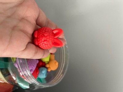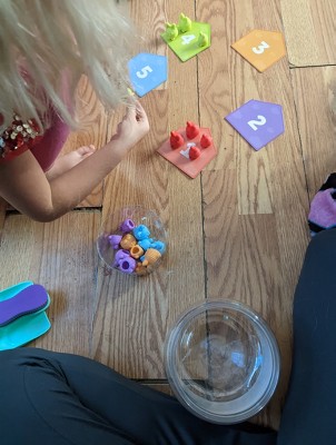 [This review was collected as part of a promotion.] I actually really like this set! So many things you can do with it. Colors, counting, cleaning, and finding. I love that it's in a jar like tub to easily put away vs a box that will eventually break. I have a 1, 5, and 7 year old and they all enjoyed playing with this set. The cards are a bit heavy duty vs your traditional flimsy card which will hold up nicely with my little one.