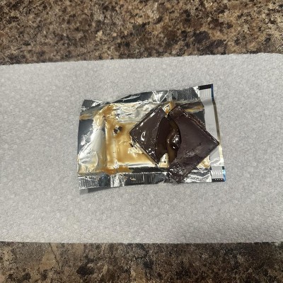 I was super disappointed when I received this bag and began to realize that almost every piece in the bag was crushed and destroyed. Part of the enjoyment with this particular product is biting into the candy and tasting the caramel come oozing out. It’s messy just trying to eat the chocolate and the caramel is stuck to the paper so you can forget that! What a waste of money!