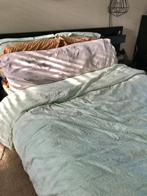 [This review was collected as part of a promotion.] I love this Sweet Home Collection Crinkled Duvet Cover. The color is perfect and it feels amazing to sleep on. This is so soft and comfortable that it makes it hard to get out of bed sometimes. :). Definitely see myself buying more from this collection.
