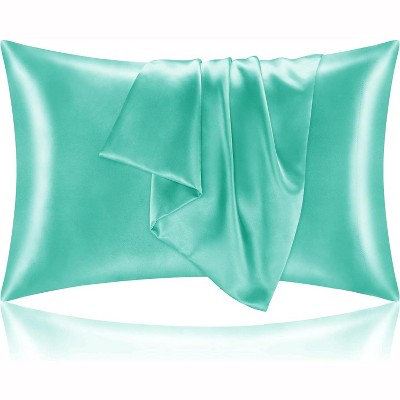 PiccoCasa Luxury Smooth Satin Hidden Zipper Closure Pillowcases 2 Pcs Peacock Blue 20"x36"