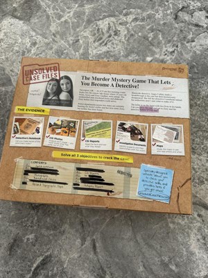 Difficult to follow & solve. The evidence had to be looked up. My family has really enjoyed doing the other mysteries of Unsolved case Files- just not this one!
