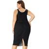 A: The dress is made from lightweight stretch denim, ensuring comfort and durability.