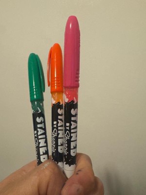 Stained by Sharpie fabric marker have a packaging design look great and multi color so easy to use. Easy application. Good ink flow, good reliability.