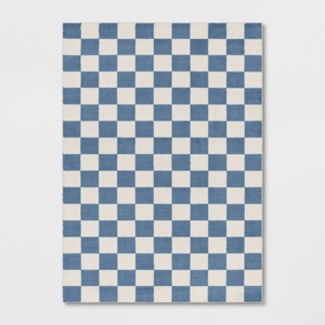 5'x7' Area Kids' Rug Checker Blue - Pillowfort™: Geometric, Fade & Stain-Resistant, Medium Pile