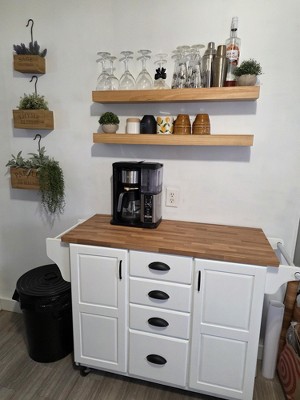 I had to get this for my kitchen, I did want a darker wood, but the other options were just too dark for what I wanted, but I do think that this looks just fine as well! I bought a second one just yet to put it up in my living room. Super easy to install!!