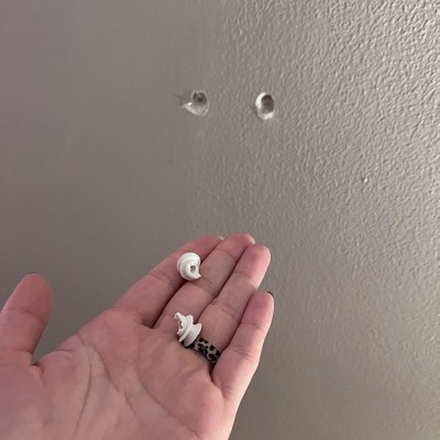 Giving this a 2 stars because the shelf itself is beautiful. However the wall anchors damaged my walls. The anchors themselves are two completely different sizes on top and bottom, it could not be properly screwed into the wall the way the manual says. Two of them ended up breaking halfway into the wall and left the surrounding wall swollen and bulging out. I used a stud finder prior to installation. Very disappointed.
