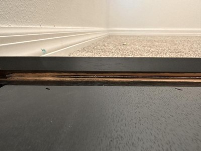Cheap compressed wood, lots of dings and white paint splatters all over. One box came super late and damaged. Target was unable to help me. I was sent to deal with a 3rd party and literally no help. See pictures