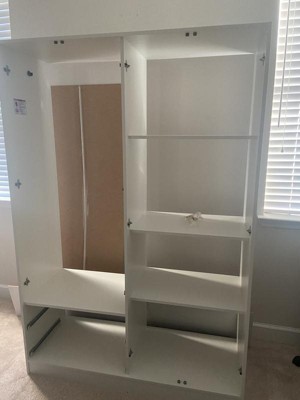 [This review was collected as part of a promotion.] Overall love this product because you can hang clothes, fold them away in the 2 drawers or the shelves on the sides. Assembly was the difficult part for us. It helps to identify and categorize the parts and pieces first. My husband was able to do almost everything on his own. The part that may require 2 people is nailing the back together as one person has to hold it up while the other person nails it. The back is relatively thin which makes it difficult for one person to do the job. After we were finally done, we also noticed we set up the doors wrong as the handles were not leveled but we just left it at that.