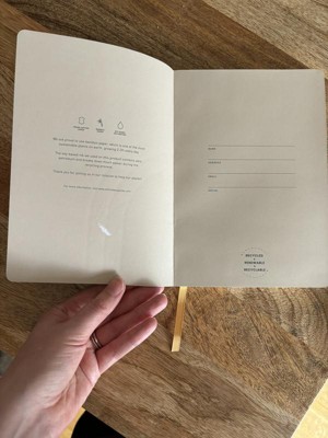 It is so refreshing to has a simple journal to take with me in nature. Its recyclable and its all around eco-friendly. I love the color, it's one of my favorites. Also, the pages are just about timeless. You can choose any day, month, or year. There's also a place holder to easily come back to your last page.