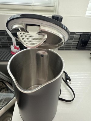 We bought this electric kettle to replace an old electric kettle that has plastic pieces falling apart. It's been good so far. The outside is not too hot to touch, it has a filter to stabilize water coming out so it is smoother, and the finishes look great. The angle that the top opens is wide and the button to open the top is easy to click. It's simple to use.
